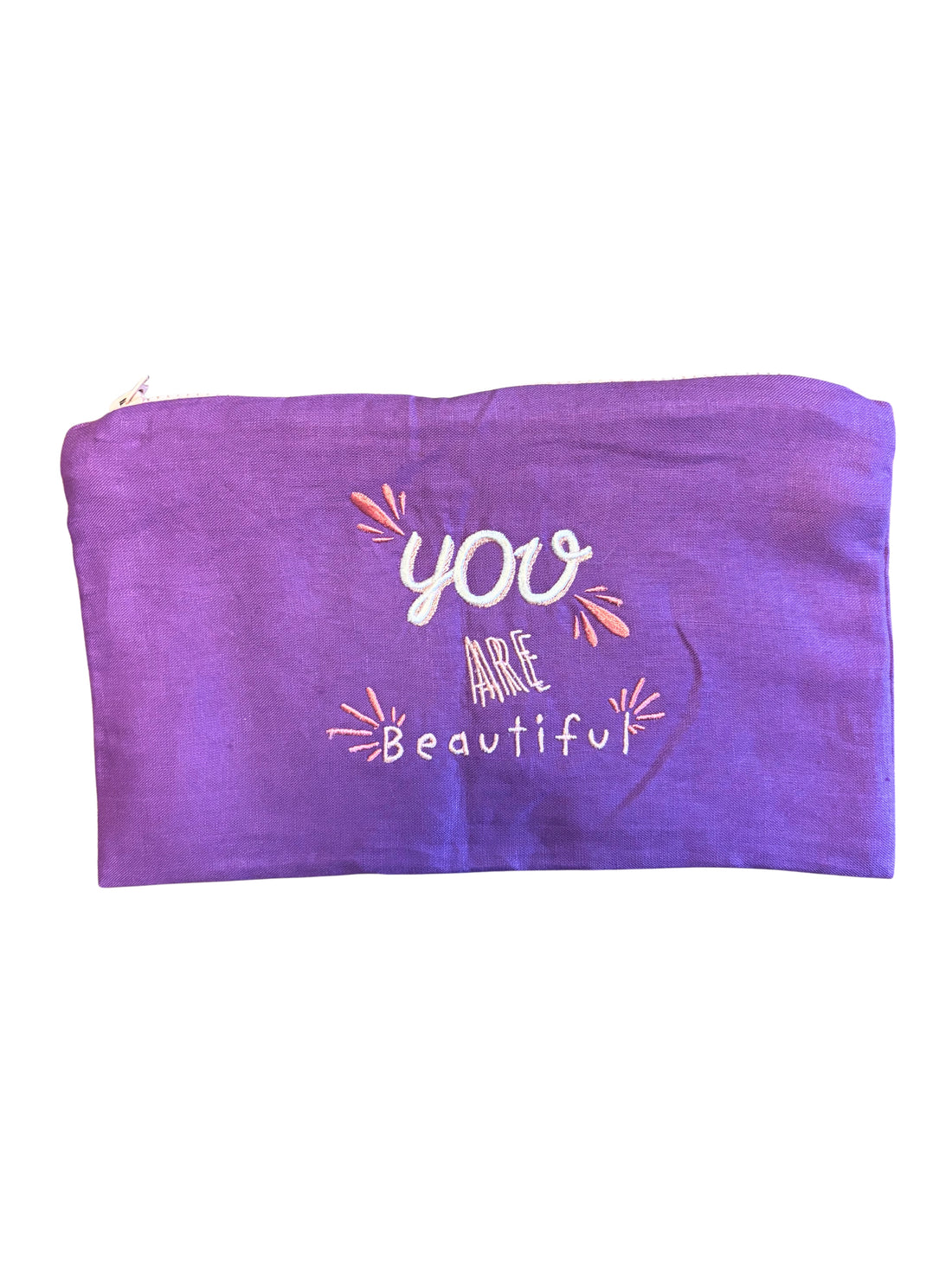 Summer linen pouch embroidered in lovely colors , lined in salmon pink terry cloth! Dimensions:...