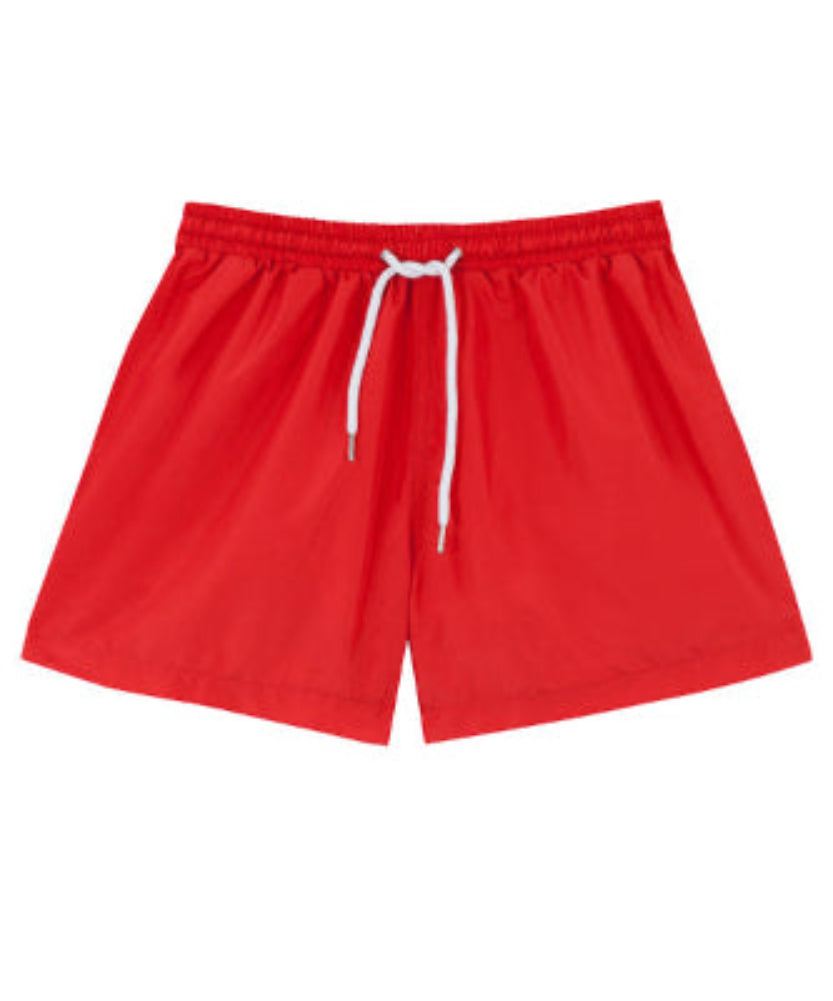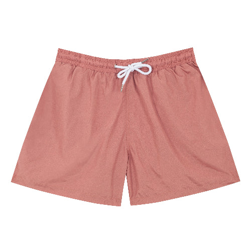 Classic swimwear shorts with elastic waistband and drawstring. Three pockets: one at each side, and...