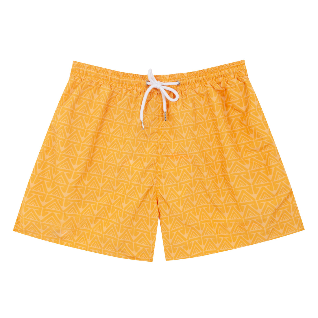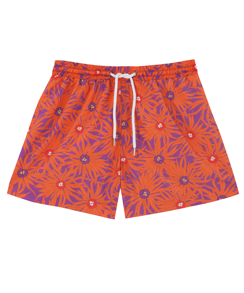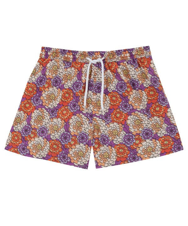 Printed classic swimwear shorts with elastic waistband and drawstring. Three pockets: one at each side,...
