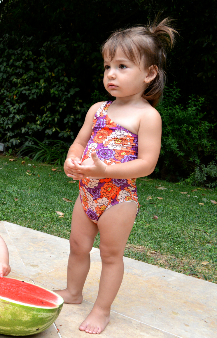 Kids One-Shoulder Onepiece | Floral Mosaic