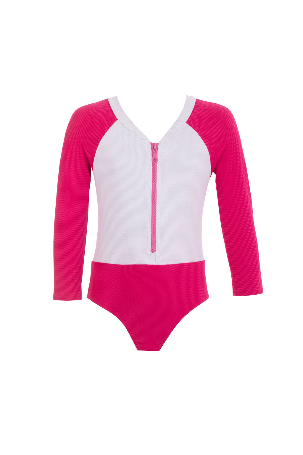 Kids Erica Long-Sleeve Zip Onepiece | White Fuchsia Picque