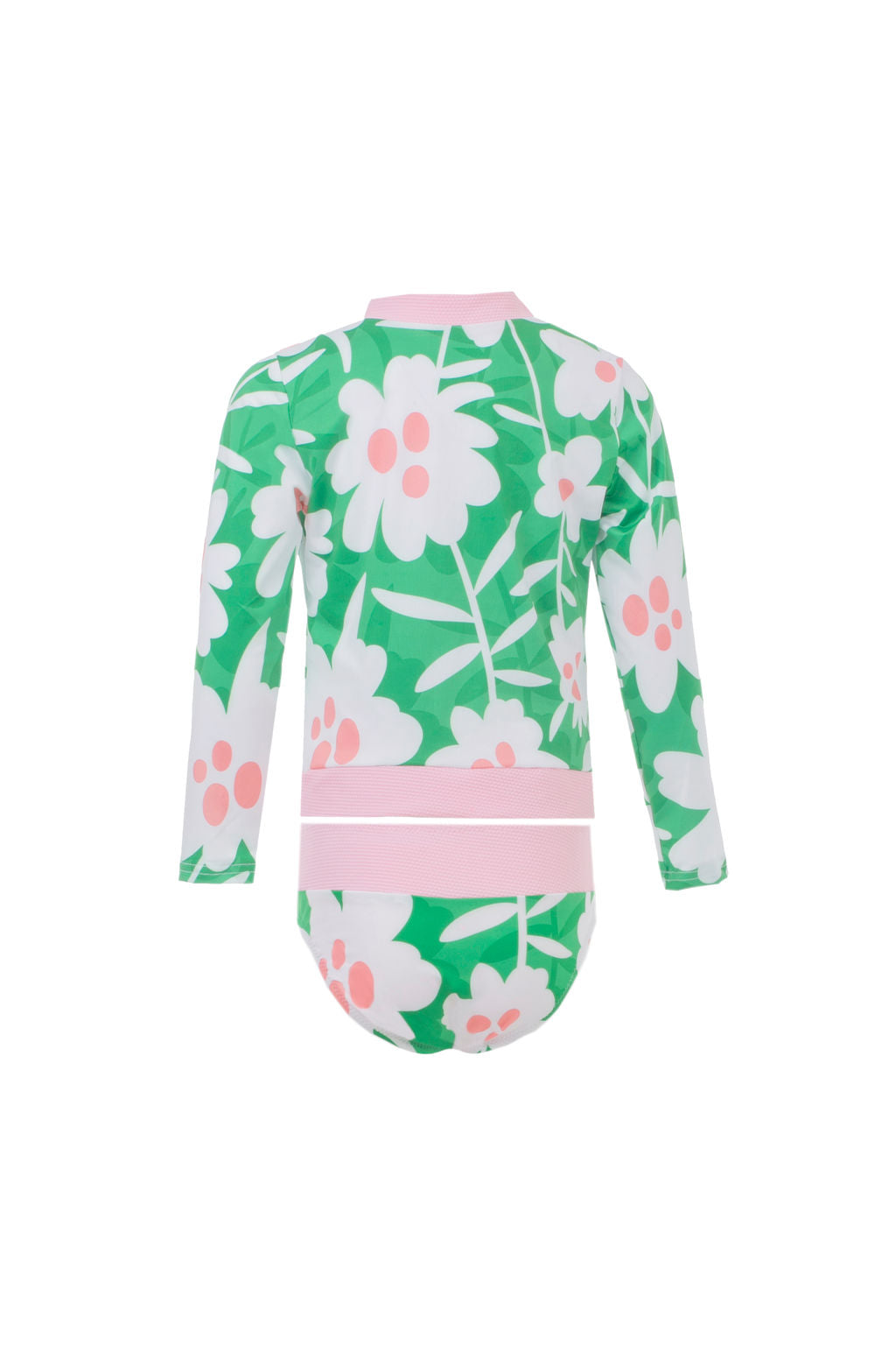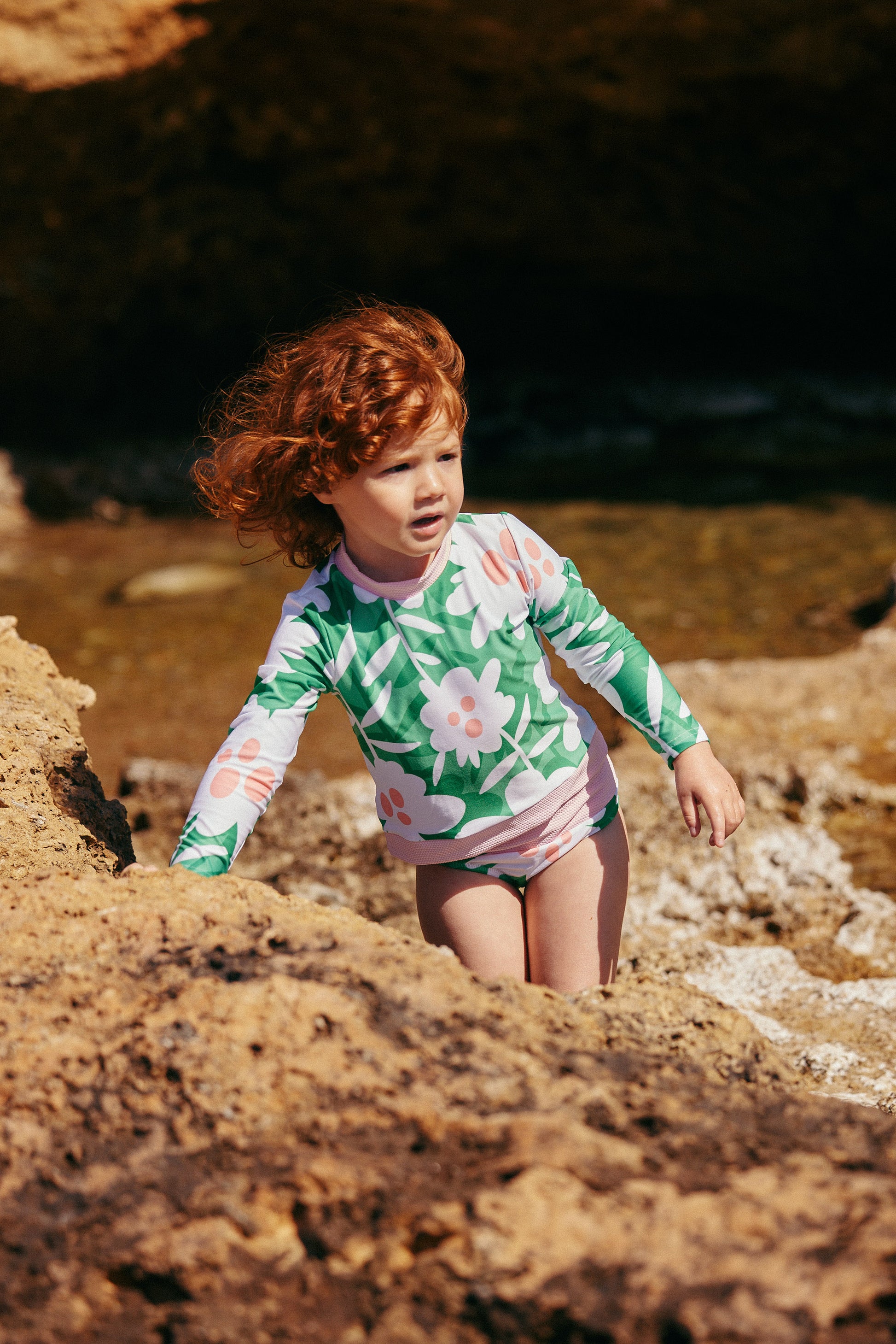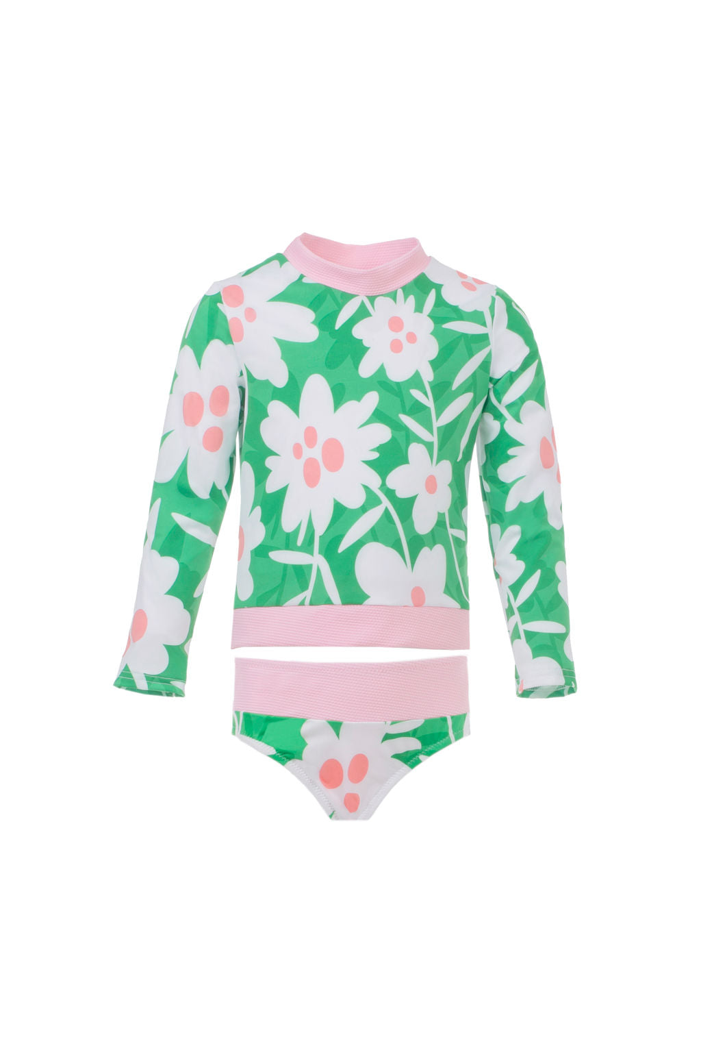 Sporty long-sleeve bikini cut from soft stretch fabric. The long sleeves provide extra sun protection for the little ones!