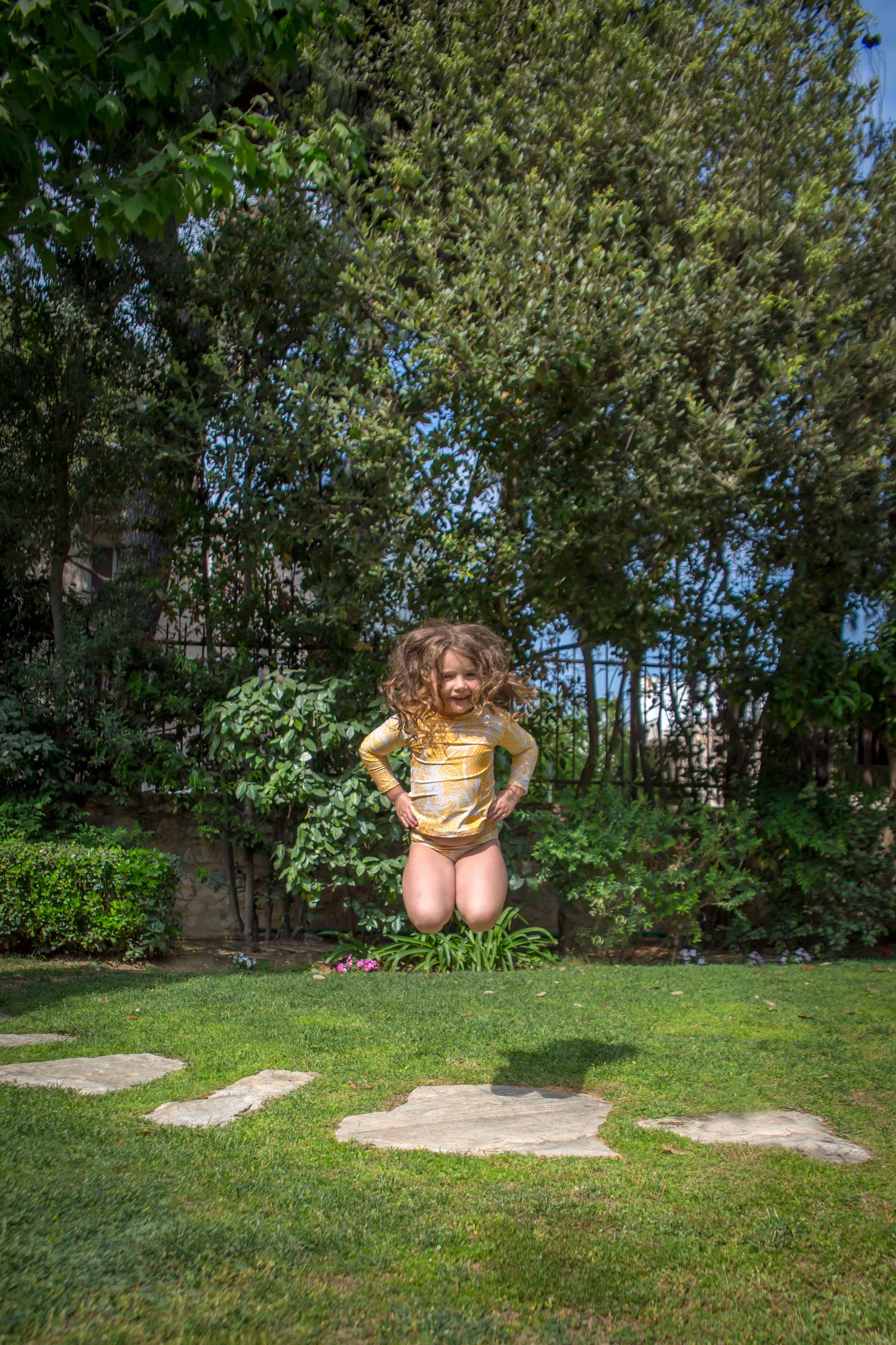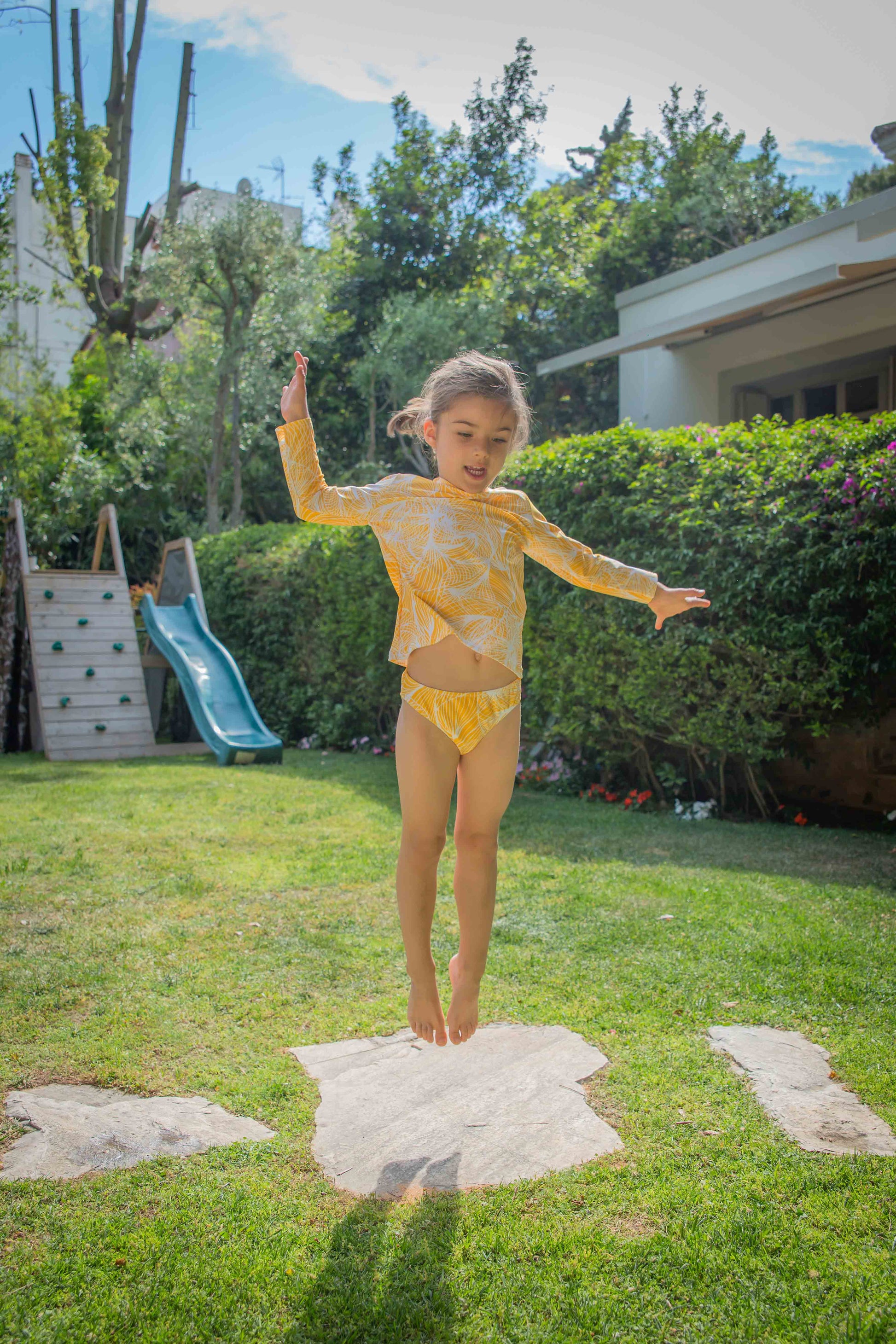 Sporty long-sleeve bikini cut from soft stretch fabric. The long sleeves provide extra sun protection for the little ones!