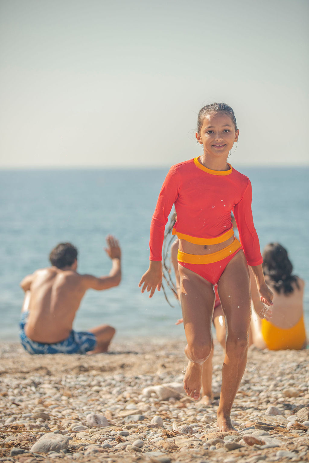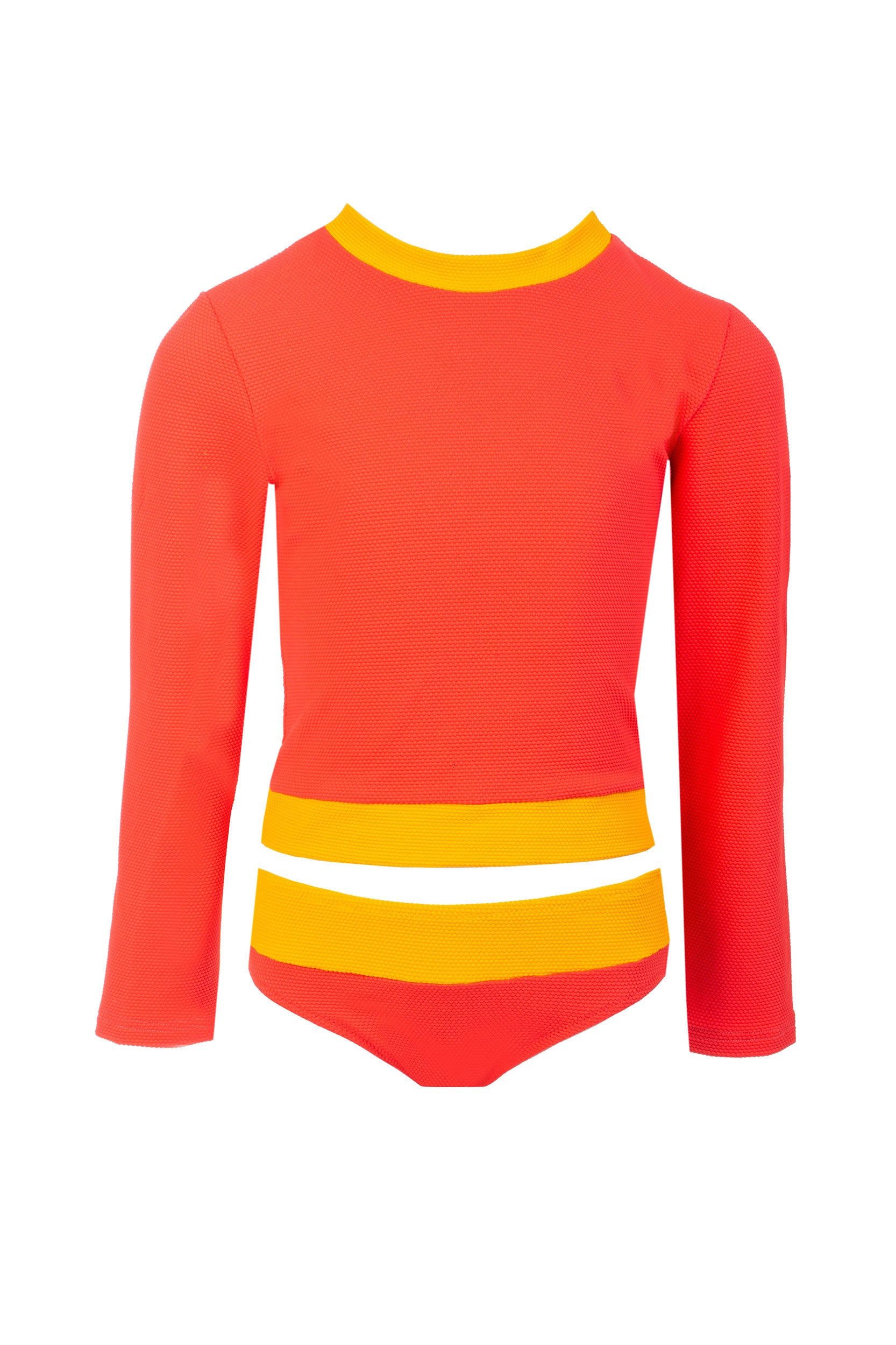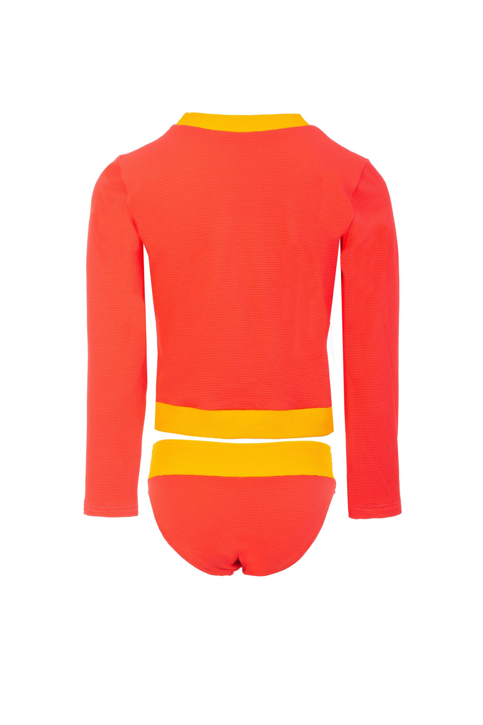 Sporty long-sleeve bikini cut from soft stretch fabric. The long sleeves provide extra sun protection for the little ones!