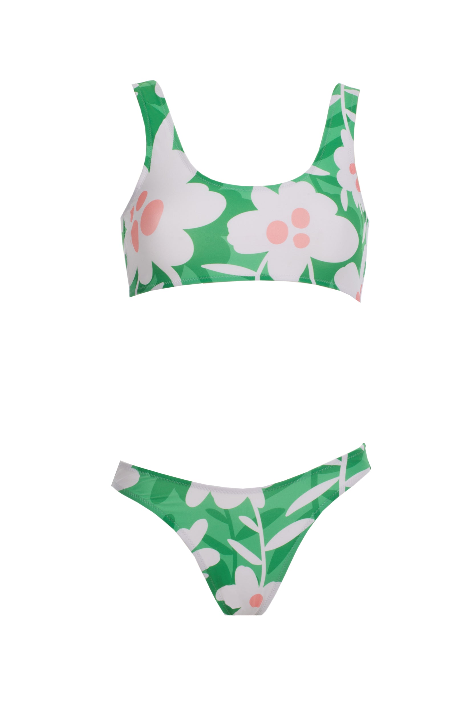 'Marina' bikini is made from stretch glitter fabric that has a cool texture. It's woven with UPF50+ protection and has a scoop neck and wide straps for support.