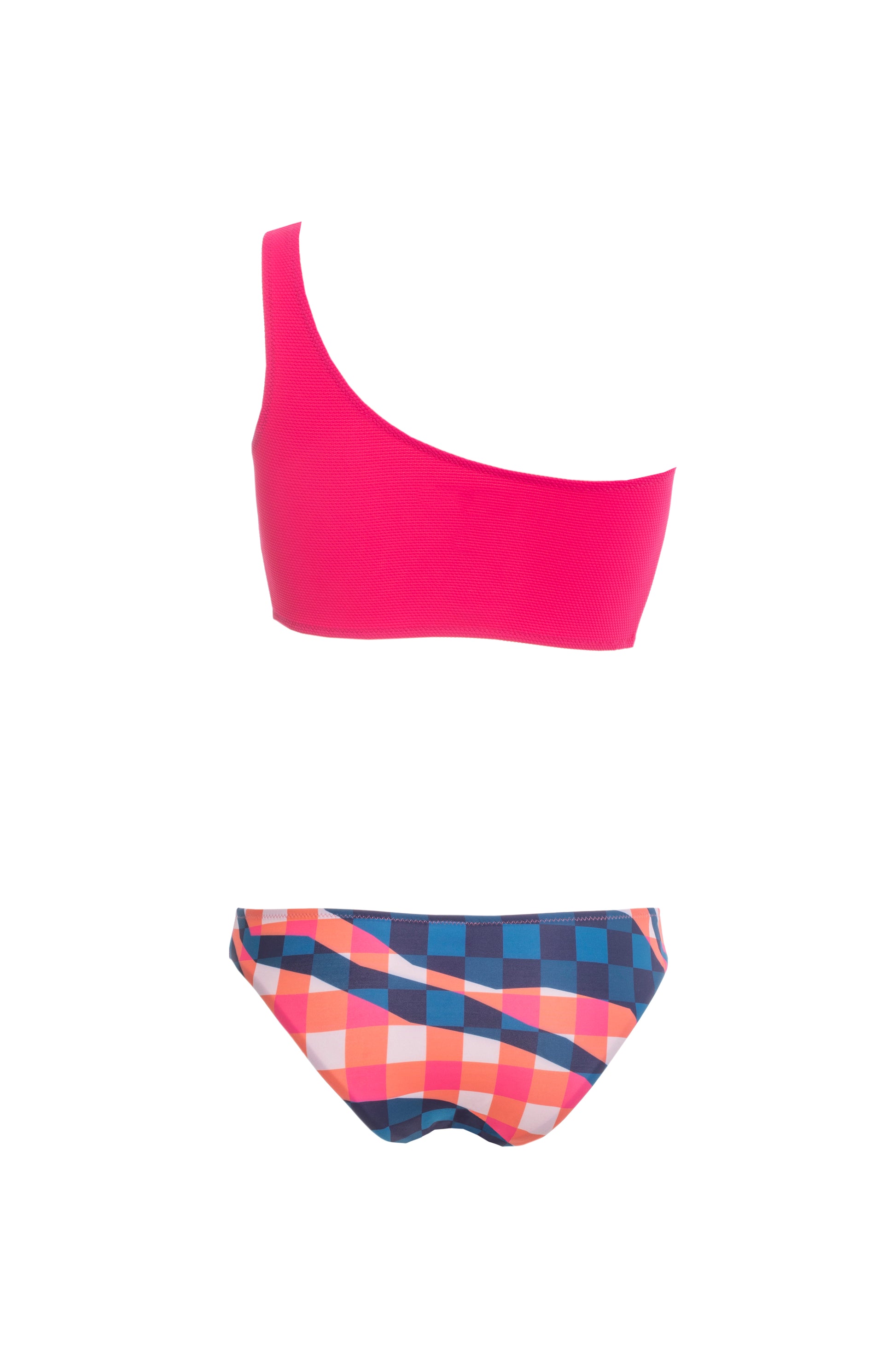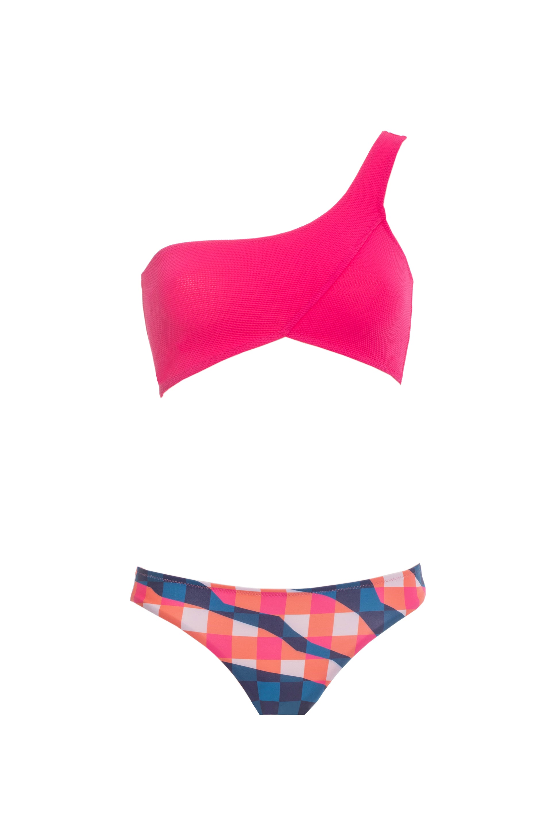 One shoulder, Bikini cut from soft stretch fabric.